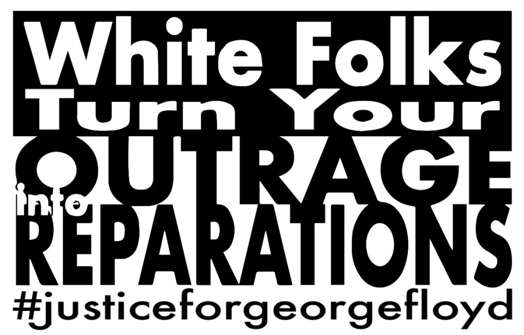 To get a broader sense of what reparations can look like, the Movement 4 Black Lives (another organization to follow) compiled a powerful “Vision for Black Lives” with a series of concrete policy demands for various areas, including reparations. This is excellent reading for you as you look for what to do with your outrage. “The Case for Reparations” by Ta-Nehisi Coates is another.