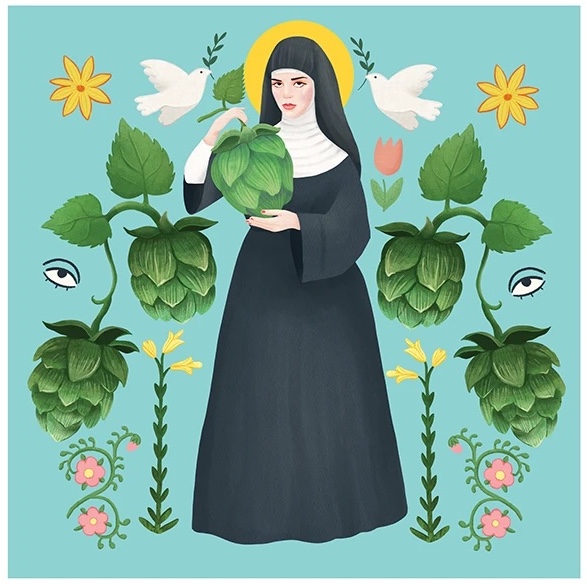 St. Hildegard von Bingen was “a German Benedictine abbess and polymath active as a writer, composer, philosopher, mystic, visionary, and as a medical writer and practitioner of the Catholic Church during the High Middle Ages” (Wikipedia). She is also credited with incorporating hops into beer, which allowed it to be stored longer. However, she was clear that hops “wouldn’t be useful to men, and that they should avoid beer altogether as it ‘makes the soul of man sad.’”