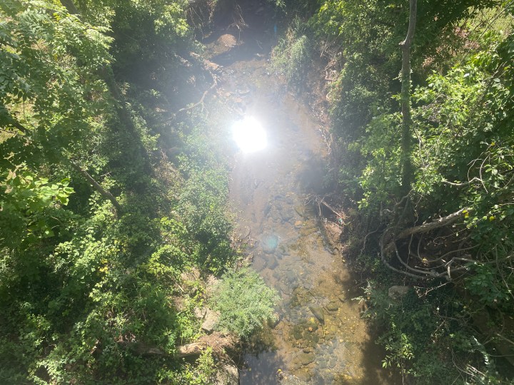 We observe the activity in and along the creek, which provides a home for birds (including a Great Blue Heron), fish, bugs (including lightning bugs), reptiles (snakes and such), amphibians (salamanders), and mammals (squirrels, groundhogs, foxes, bats, coyotes, rabbits, unhoused humans, and more). We breathe in the trees and plants through the seasons, every bit of green a gift.