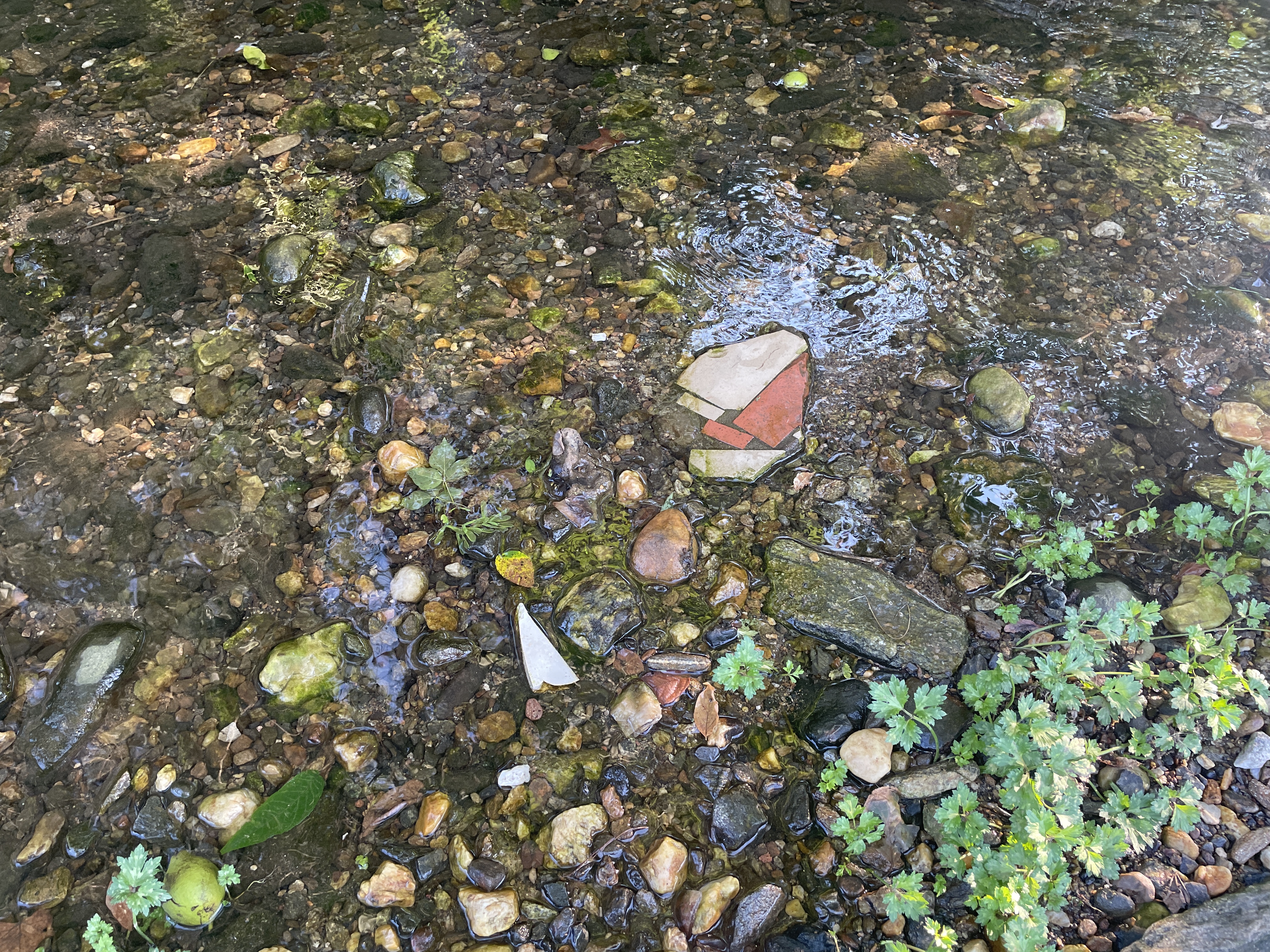 While I adore Reed Creek’s natural beauty, I also find beauty in the human detritus like the bricks from old houses, crumbling city infrastructure, rusty pipes, bridges, and slabs of concrete. A gritty urban creek with plenty of trash that also often has clear water teaming with minnows.